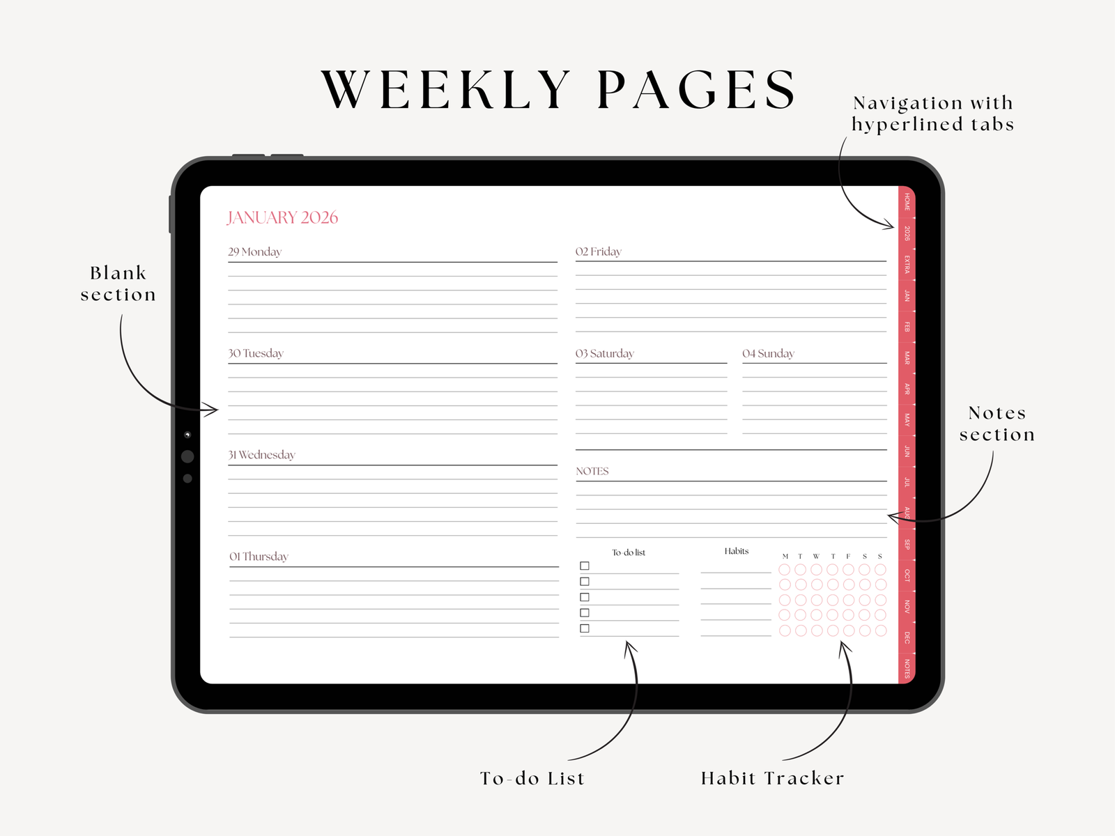Weekly Layouts for Tasks and Goals in Digital Planner 2026 📝  Â